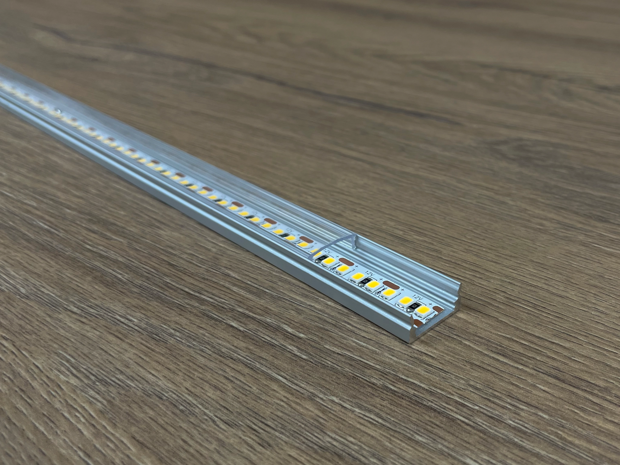 Búrával együtt már a 120LED/m-es szalag is homogén fényt tud adni, ha pedig a biztosra szeretnél menni az ajánlott LED szalag a minimum 320LED/m sűrűségű COB led szalag, ami már önmagában is egybefüggő fényt ad.